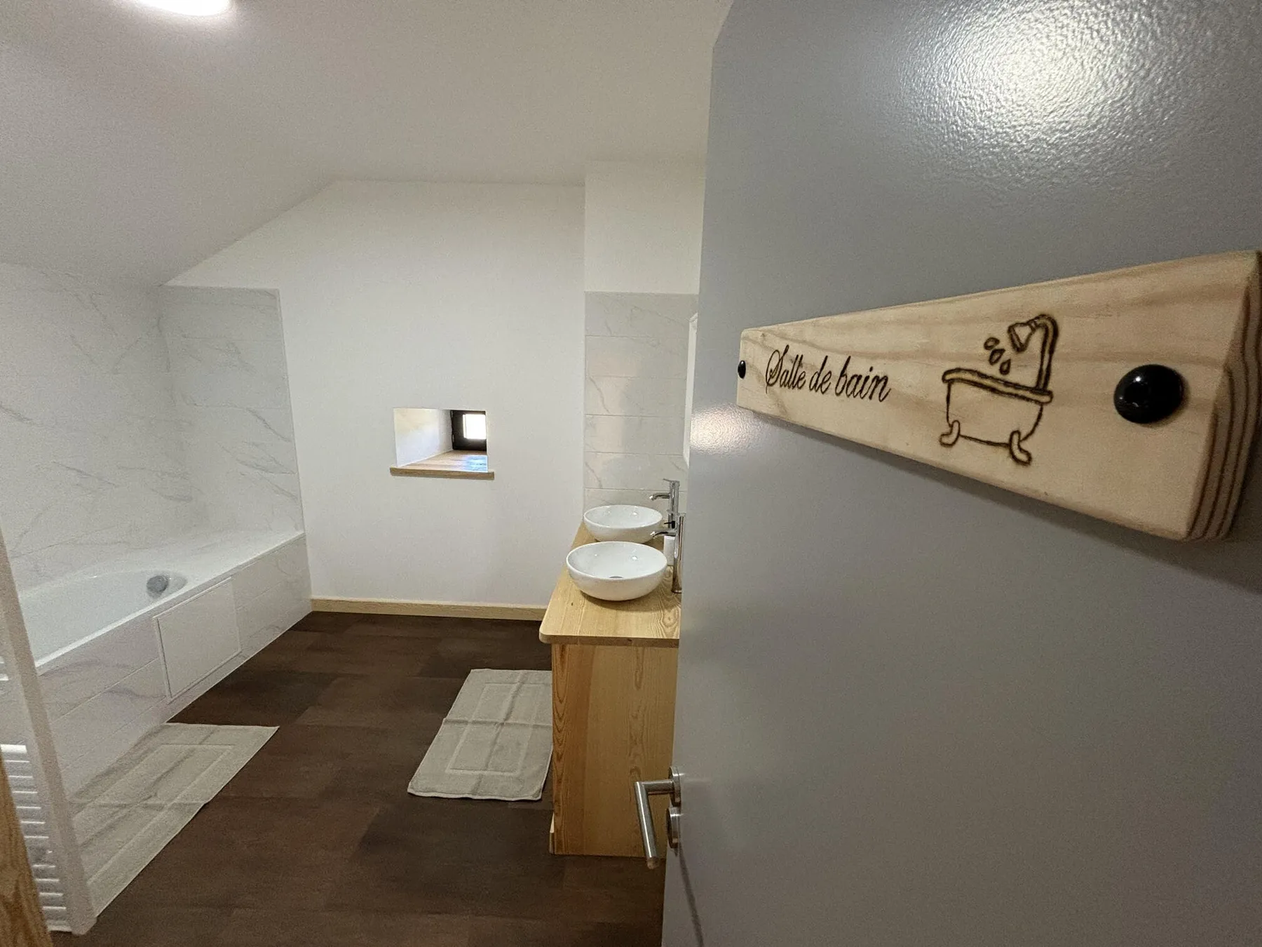 Le gîte possède 14 couchages : quatre chambres avec lits doubles, deux chambres avec deux lits simples et un canapé convertible. Trois salles de bain sont à votre disposition. Deux communes et une dans la première chambre. Au rez-de-chaussée, la cuisine équipée est ouverte sur la pièce de vie. A l'étage, vous pourrez profiter d'une pièce de détente : salon et jeux. Le gîte est composé de 3 étages, avec un toilette par niveau.